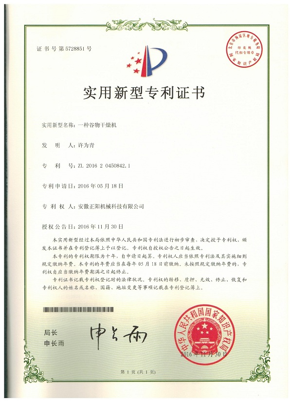 > 正陽機(jī)械 > 榮譽(yù)證書
