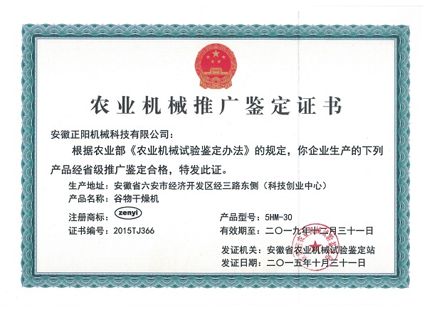 農(nóng)業(yè)機(jī)械推廣鑒定證書(1)